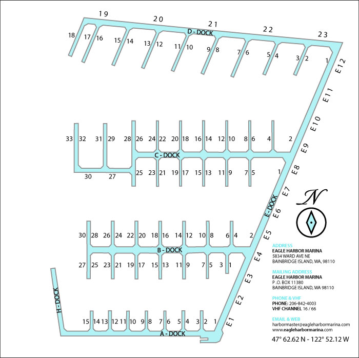 Demand for moorage in Eagle Harbor is high. Our marina has slips for boats from 30' to 200'. Contact us to learn of our current slip availability. If we cannot immediately accommodate you, we encourage you to add your name to our waiting list and we will keep in touch and notify you as soon as a slip opens in the size you are looking for. There is no obligation in putting your name on our waiting list and you can either email or phone us to be included.